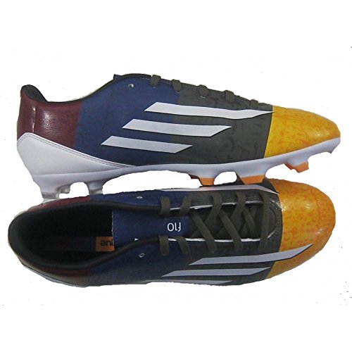 More than a boot, the adidas F10 FG Messi Rugby Boot has been designed for speed and modelled around the F50 and F30. With this latest F10 release, soft synthetics wrap around the upper to give a snug and natural fit from the moment you slip them on. Aided by padded cushioning inside the ankle and heel, experience comfort and performance during any action. Ready to terrorise opponents and make light work of firm natural surfaces, the F10 employs a pattern of strategically positioned moulded studs over the forefoot and heel. For this latest edition, the stud design and layout has been created to provide optimum acceleration and direction change to really challenge opponents. A unique four-way colour split certainly makes the adidas F10 stand out as solar gold and earth green join the maroon and blue partnership. With a white sole and detailing of the three stripes, the boot design certainly ensures your play doesn't go unnoticed. This boot weighs 251g (UK 8).