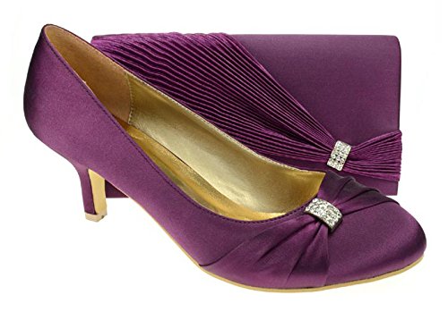 UK Sizes 3.4,5,6,7 & 8 ,Stunning Ladies Purple Satin Shoes ,Almond Toe,A Stylish Sash With Diamante Detail, Comfortable Satin Covered 2.5 Inch Heel, Padded Inner Sole For Comfort, ,These simple but stylish shoes & bag will be sure to make you stand out in the crowd... COMPLETE WITH MATCHING CLUTCH BAG ,Pleated Purple Satin Front With Diamante Detail , Silk Lining, Two Magnetic Clasps Closures,One Small Pocket Inside with removable Silver chain shoulder strap,Measurements: 8 x 4 inches,Cushioned Firm Satin Body The shoes are available to purchase on their own