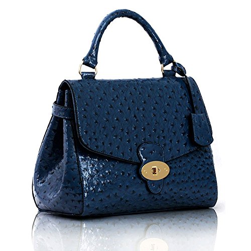 KCMode offer KCMODE Ladies Office Ostrich Style Smart Bag with Twistlock Flap Handbag Navy Blue. This awesome product currently limited units, you can buy it now for £21.99, You save -