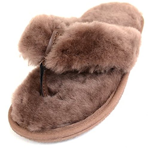 Best Seller! Ladies Toe-Post Flipflop Style Sheepskin Slippers in Sizes UK 3-9, Mink(6) Review