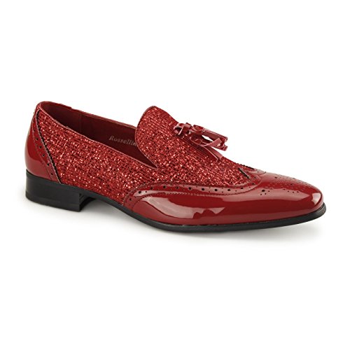 Rossellini offer New Mens Black Red Silver Patent Shiny Sequins Wedding Party Tassel Loafer Brogues Shoes. This awesome product currently limited units, you can buy it now for £39.99, You save -