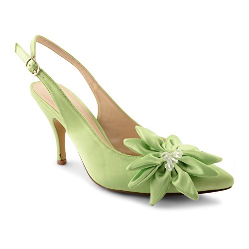 These elegant ladies heels are ideal for wedding, parties and formal events. The shoes feature an elegant satin outer, beaded diamante detailing, pointed toe, flower bow and a high stiletto heel. Wear with an evening dress for a glamorous evening style. There are five different colours to choose from.