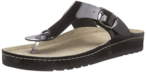Rohde Riesa Women's shoes summershoes 5804 Schick and super comfortable, thanks to Memory Natural form footbed and a very soft AntiShock insole. His upper material was manufactured soft synthetic varnish. Inside you expect soft textile lining and a very soft leather insole. Worked in the comfort width G. A buckle übern Rist ensures optimum fit and support. Perfected is the ROHDE Flip Flops by a slip-resistant and flexible outsole with a sales volume of about 2 cm.